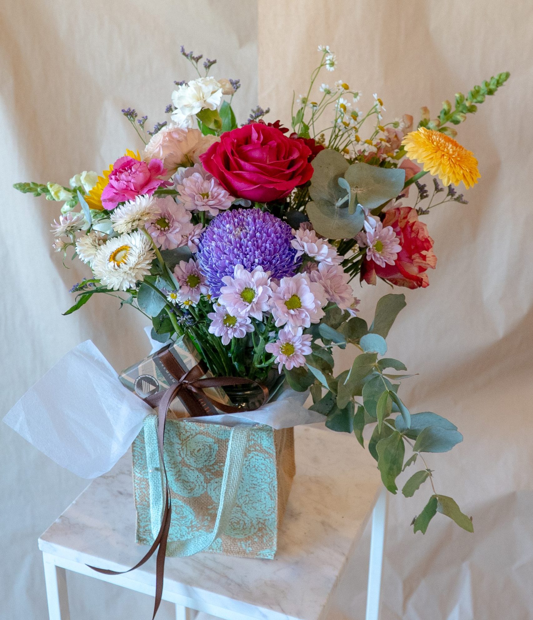 Receive a pretty lush Posy Jar along with local handmade chocolates by Jasper and Myrtle.