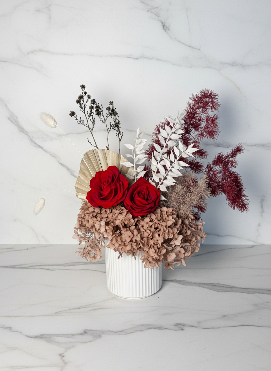 * Floral arrangements and pot vary in design. Flowers are subject to availability. No maintenance required. Sensitive to moisture, humidity, high heat, and direct sunlight.