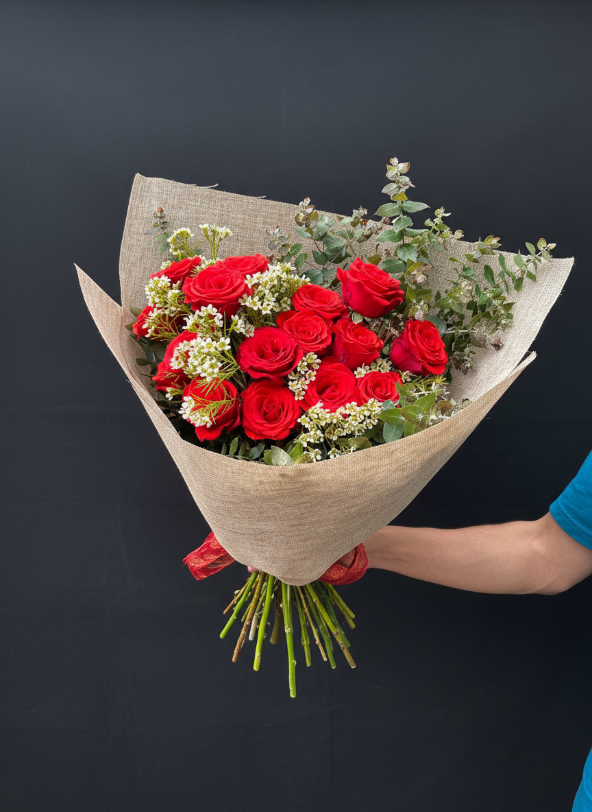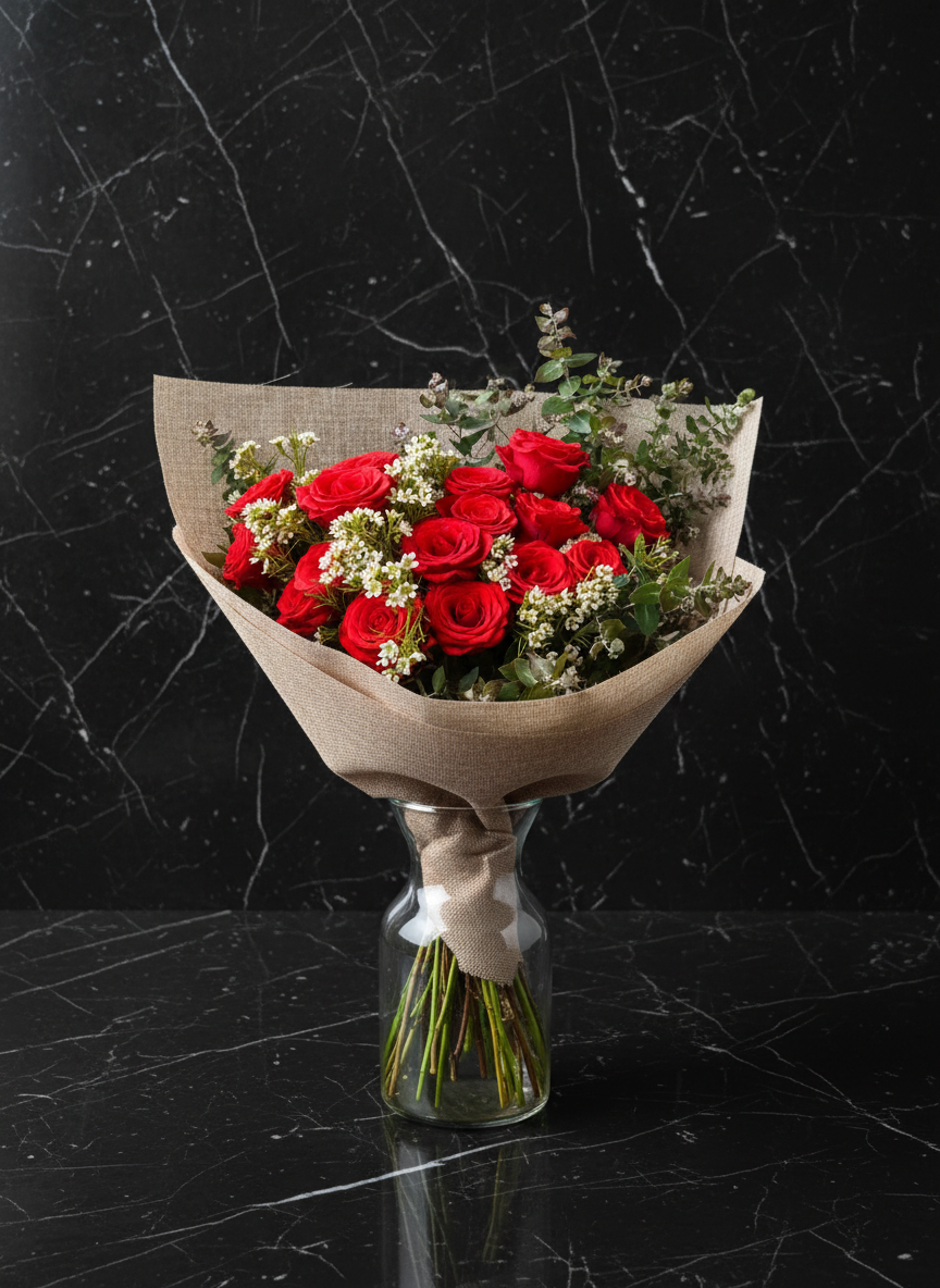 Timeless Rouge Roses — Some traditions should not be broken. The red rose represents passion, beauty, and romance, making this stunning collection an ideal gift for your loved one. Our long 50cm stem red roses are beautifully arranged and wrapped, creating a breathtaking display that speaks volumes of your affection.