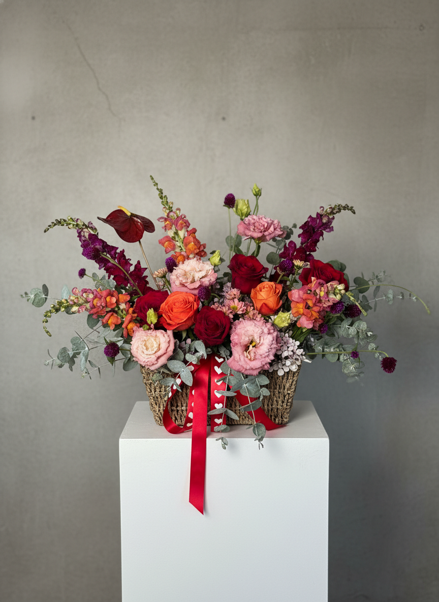 Perfect for Valentine’s Day, anniversaries, or simply reminding someone how much they’re loved, the XO Bloom Basket blends timeless romance with a modern touch. Each arrangement is handcrafted by our florists using premium flowers and finished with elegant details for a gift that feels warm, thoughtful, and unforgettable.
